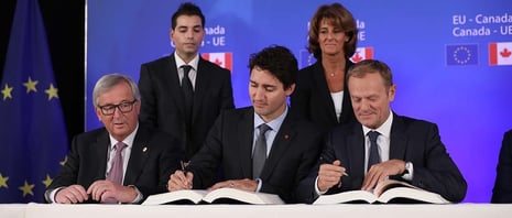 Canada and the European Union (EU) signed a historic trade agreement during the EU-Canada summit on Sunday in Brussels, Belgium.