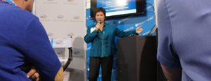 Kryton's President and CEO Kari Yuers speaking at the American Concrete Institute (ACI) booth at World of Concrete 2014.